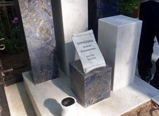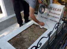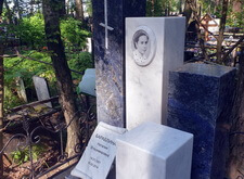 Так выглядело место захоронения на момент окончания работы: деревянный крест покрыт защитным раствором; мраморные изделия отшлифованы и покрыты гидрофобной субстанцией, стыки элементов промазаны белым герметиком; полые столбики, восстановлены; в цветнике заменена земля и посажен газон.