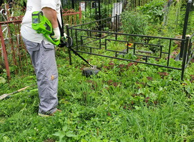 Уборка могилы на сельском кладбище